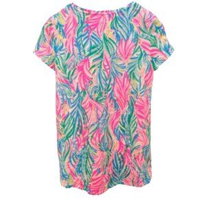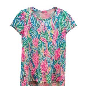 Lilly Pulitzer Etta top, Sea Turtle Soirée print, Lilly Pulitzer scoop neck tee, multicolor tropical top, botanical print cotton shirt, Lilly Pulitzer women’s medium, preppy resort wear,