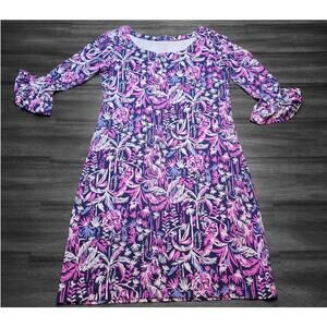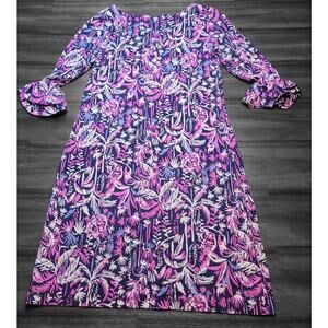 NWOT Lilly Pulitzer Sophie Dress Small – Blue Monkey Tropical Print –Ruffle Trim