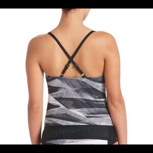 NWOT $72 Line Up Nike Tankini Top. Size Small. Black/Grey.