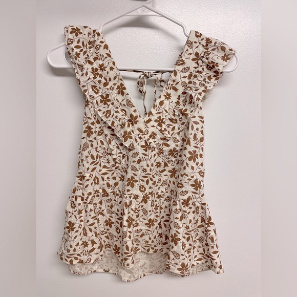New without tags, never worn. Brown floral ruffle top from Target. Cute with shorts or jeans.