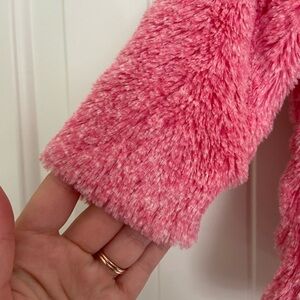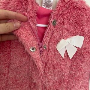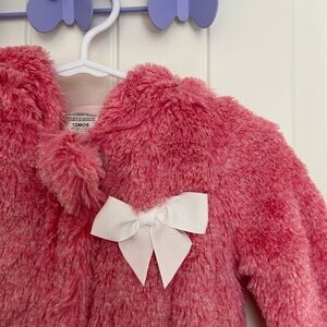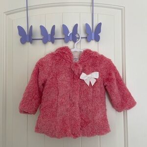 NWOT | Little Lass girl’s pink fuzzy button front bow jacket 12 months