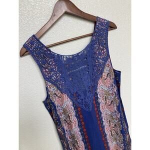 NWOT Live and Let Live boho maxi dress medium blue crochet beach hippie cottage
