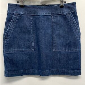 NWOT Loft Dark Wash Stretch Denim Patch Pocket Jeans Skirt 10