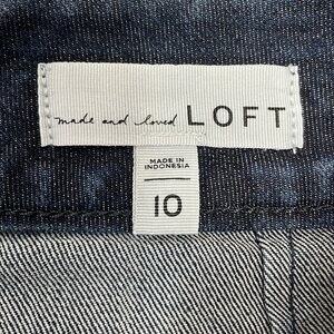 NWOT Loft Dark Wash Stretch Denim Jeans Skirt in size 10. Excellent new condition. Flat front, two patch pockets, exposed back zipper closure with snap. Please see photos for approximate measurements and details. Item may show difference in color based upon photography and perception. Photos are part of the description, as everyone’s level of condition may vary. From smoke free and pet free home. All packages are shipped the same or next business day.