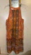 100% polyester, has a floral/paisley mixed media pattern throughout, has a high-neck square neckline, non-adjustable spaghetti straps, has a stretchy elastic waistband, a functional back button closure, and is lined.