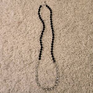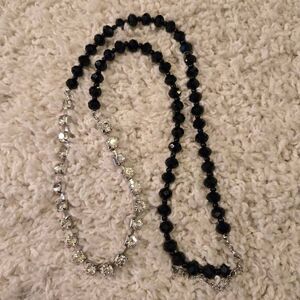 NWOT Long Faceted Jet Beads + Rhinestone Necklace