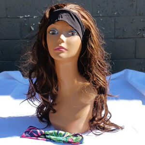 NWOT Long layered wig with interchangeable cloth headband. Light and dark brown