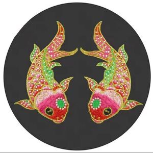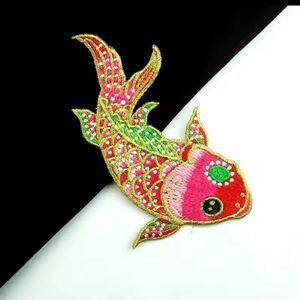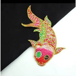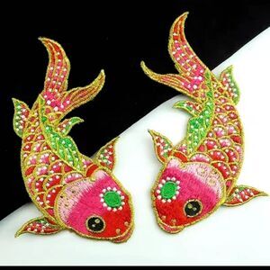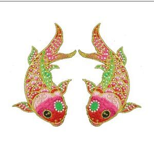 NWOT Lot of 2 Sew on Pink and Red Asian Style Fish Mirrored