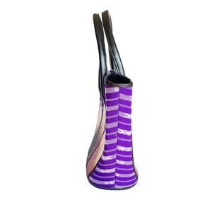 NWOT Lotus in Purple Handwoven Straw Lotus Design Fabric Double Handle Tote Bag