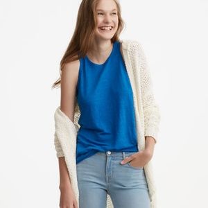 NWOT Lou & Grey from LOFT 100% linen tank top in size small. Top is a dark sky blue and has a burnout look to the fabric. Has split detail on the side and a seam up the center of the back.