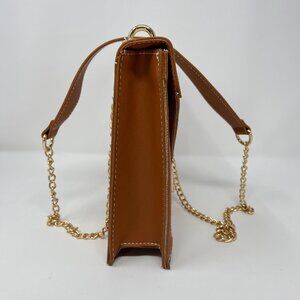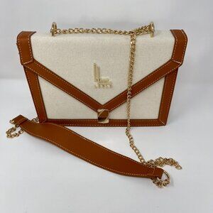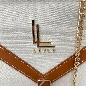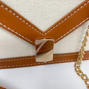 NWOT LouLu Handbag - Canvas Envelope Crossbody Purse White Brown Gold