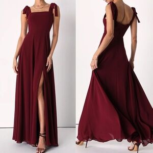 NWOT Love Me Forever Burgundy Tie-Strap Square Neck Maxi Dress
