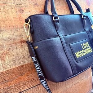 Who wouldn't fall in love with Love Moschino handbags. The famous line is known for its cheeky designs and youthful twist, with of course, the iconic love heart. This tote bag is informal besides being functional with its grained faux leather finish, gold-toned hardware detailing and multiple compartments.
