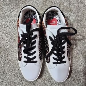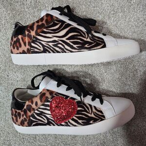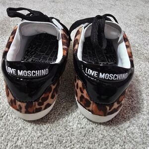 NWOT Love Moschino animal print and glittery heart sneakers. Rare and hard to find