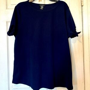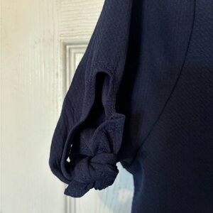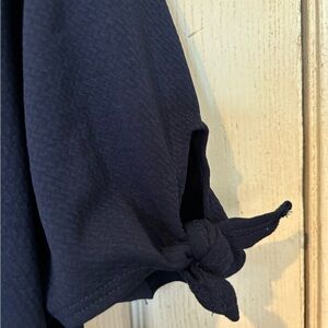 NWOT Love Ryan Navy Textured Knit Top with Knotted Tie Short Sleeves