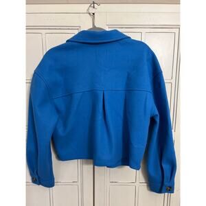 New without tags Love Tree size small blue fleece cropped shirt jacket. Measures 21” from armpit to armpit and 20 1/2” long.