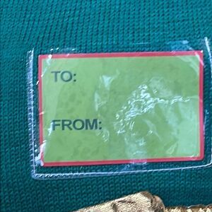 Show your family and friends that you truly are their gift. Complete Christmas sweater that looks like a gift with a shiny gold bow and name tag. Wear it to the office, holiday party, your Christmas card pic or anywhere that you want everyone to know that you are the gift that keeps on giving the whole year through. Fun and festive. You can print new name tags for different places and times you wear it. Heck, wear it in July and celebrate Christmas in July. NWOT.