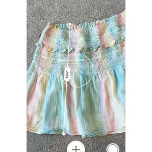 NWOT LoveShackFancy Camilla Skirt Pastel Rainbow Gold, Med $225 C43