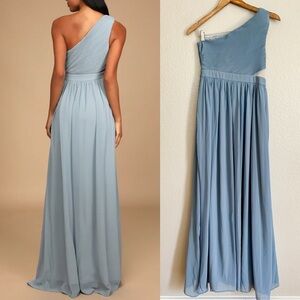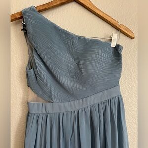 NWOT Lovely Endings Dusty Blue One-Shoulder Pleated Maxi Dress