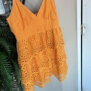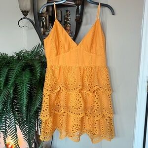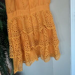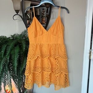 NWOT Lovers + Friends Doreen Mini Dress Mustard Embroidered Eyelet Fully Lined