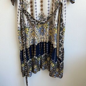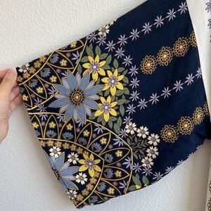 Designed with half-length sleeves and an adjustable tie waist, this vibrant floral patchwork robe is both versatile and comfortable. The ruffle-trimmed hemline adds a touch of whimsy and playfulness, while the lightweight and flowy fabric is perfect for those warm spring and summer days. Whether worn as a cover-up by the pool or layered over a cozy set for a casual, bohemian look, this robe is sure to become a staple in your lounge wardrobe.