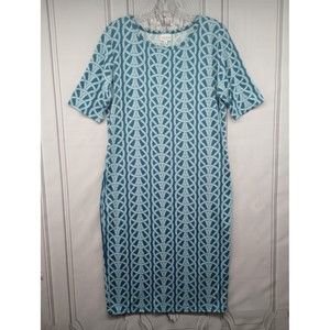 NWOT LuLa Roe Dress Women's SZ L Casual Nautical Rope Pattern Blue Shift Beachy