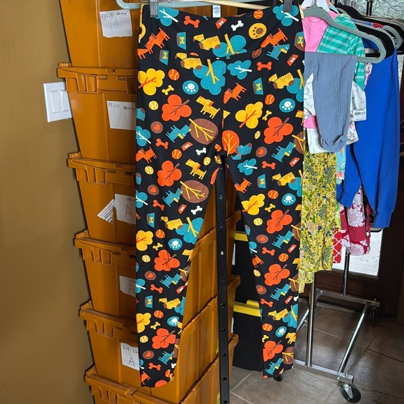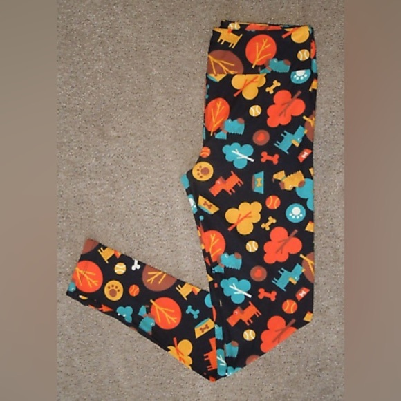 NWOT LuLaRoe Dog Lover Ball Bone Paw Print Leggings Black Orange Size OS (2-10)