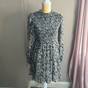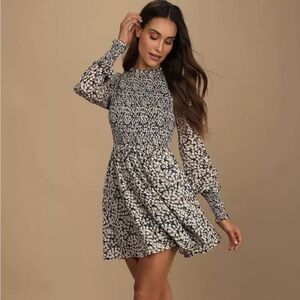 NWOT LuLu’s Navy Blue Floral Print Smocked Skater Dress (size small)