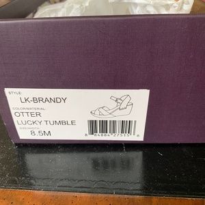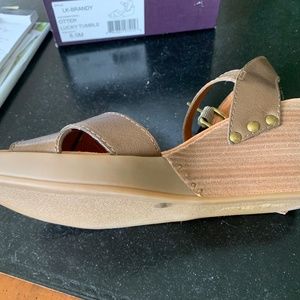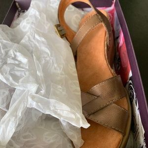 New in box Lucky Brand Tumble wedge heel leather & suede sandals. Tan, beige, taupe neutral color. 8.5 M. Please LMK if you need any measurements for fit!