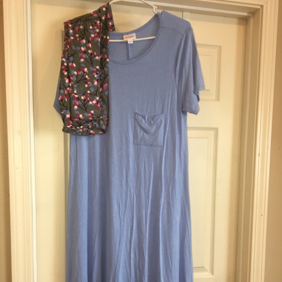This is a beautiful solid light blues LulaRoe Carly size Large with TC leggings that match perfectly! NWOT!