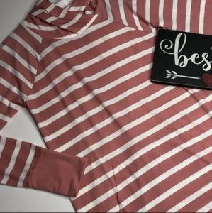 NWOT Lularoe "Amber" Rose Pink & Cream Striped Hoodie SIZE MEDIUM