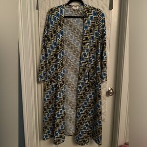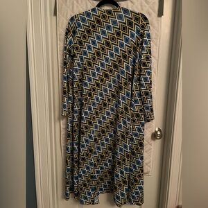 Lightweight silky feel. Yellow, blue, black and white. Never worn. 95% polyester, 5% spandex. Great stretch and movement. (BIN9)