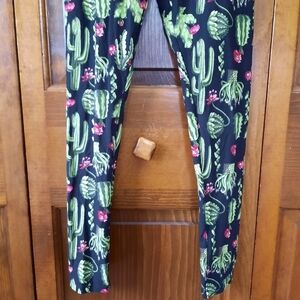 NWOT Lularoe cactus pattern leggings one size. Black background with all over cactus print. Never worn! Light weight material 95% polyester 5% spandex. Size one size (0-10), size chart included in pictures.