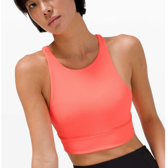 NWOT Lululemon Energy Bra High Neck Long Line Rib *Medium Support, B–D Cup Sunset Size 8.