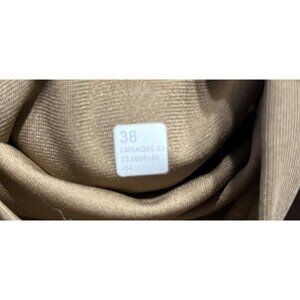 The two stitch threads are visible on the waistline where the manufacturer's tag had been attached. There is a faint discoloration spot on each pantleg (see last two photos; the measuring tape points to the spots) located on the front of the thigh, they are each 1/2 inch to 1 inch in width.
