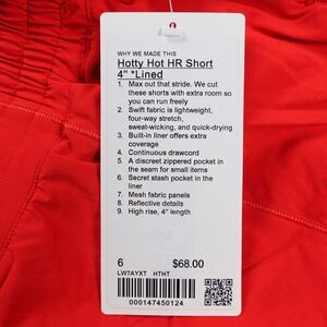 NWOT Lululemon Size 6 Hotty Hot Shorts High Rise HR 4” Lined HTHT Hot Heat Red