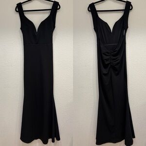 NWOT Lulus Alluring Temptation Black Backless Ruched Mermaid Maxi Dress