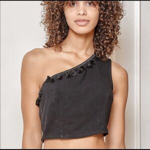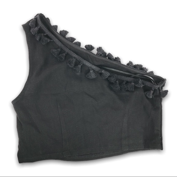 NWOT - Lulus - Black One Shoulder Tassel Linen Blend