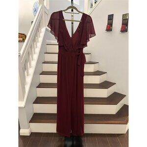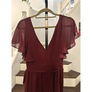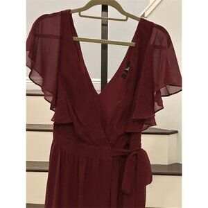NWOT Lulus Convincing Grace Burgundy Flutter Sleeve Wrap Maxi Dress