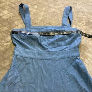 NWOT Lulus Darling Time Blue Chambray Handkerchief Midi Dress With Pocke…