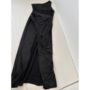 NWOT Lulus Dreaming of Elegance Black Satin One-Shoulder Maxi Dress Wedding Sz L