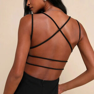 NWOT Lulus Dress All this Allure Black Strappy Backless Mermaid Maxi Dress