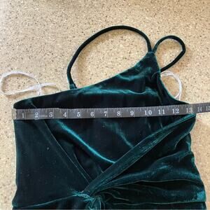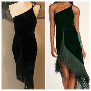 NWOT Lulus Fringe for Life Dark Green Velvet One-Shoulder Fringe Midi Dr…
