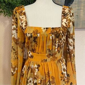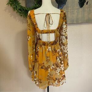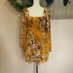 NWOT Lulus Gorgeous Vibe Yellow Floral Print Babydoll Mini Dress