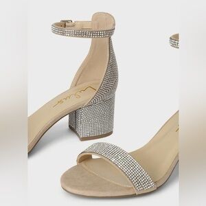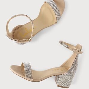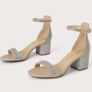 NWOTā Lulus Harper Rhinestone Natural Suede Ankle Strap Heels