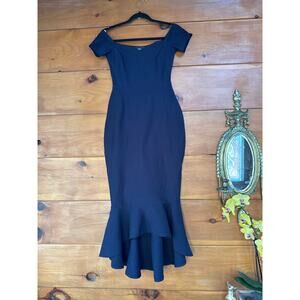 NWOT Lulus How Much I Care Midnight Blue Off-the-Shoulder Midi Dress Wedding XS