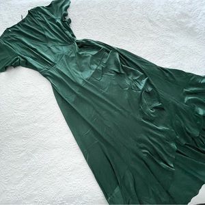 NWOT Lulus Love Of Your Life Dark Green Satin Ruffled Wrap Maxi Dress XLarge