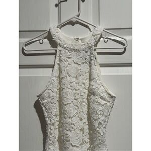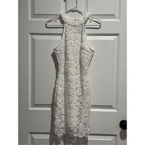NWOT Lulus Love Poem White Crotchet Floral Lace Lined Mini Dress Small