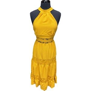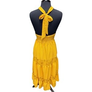NWOT Lulus Marigold Lace Tiered Halter Midi Dress Size Small
