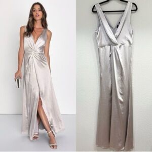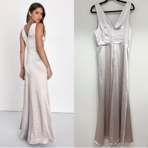 NWOT Lulus Perfect Refinement Grey Satin Sleeveless Pleatedā Maxi Dress